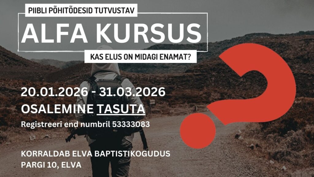 Me usume, et igaühel peaks olema võimalus uurida kristlikku usku, esitada selle kohta küsimusi ja jagada omi seisukohti. Alfa-kursusel on võimalus uurida ja mõista kristluse sisu. Loengutes käsitletakse ühte usuga seotud teemat. Alfa kursust viiakse läbi kõikjal maailmas. Kursust võib leida internetis, kohvikutes, kirikutes, ülikoolides, kodudes – seega kõikjal. Ükski Alfa ei ole samasugune, kuid kursust iseloomustab külalislahkus, loeng ja arutelu. Kursus toimub teisipäeviti kell 18.30 ja kestab 20.01-2026-31.03.2026. Kursus on osalejale tasuta.